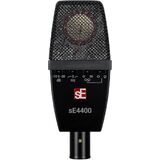 Classic sound meets modern craftsmanship; we are proud to re-introduce the improved sE4400, multi-pattern large-diaphragm true-condenser microphone! Hand-crafted with the highest attention to detail, built with a roadworthy die-cast all-metal housing, metal switches, and rugged spring steel wire mesh grille that can take a beating during day-to-day tour life. The sE4400 appeals with its down-to-earth elegance, offering discrete electronics prioritizing the features you really need. The sE4400 brings sought-after classic sound back to mic lockers worldwide. The sE4400's metal switches let you select between 4 polar patterns; from cardioid to omnidirectional or figure-eight to hypercardioid. Whereas the switchable attenuation pads and low-cut filters compensate for loud vocals, guitars, drums, and brass instruments - and easily tame excessive low-frequency rumble or proximity effect. The sE4400 comes with a hand-crafted, gold-sputtered, dual-diaphragm capsule to capture sound sources of all kinds with breathtaking clarity and precision, be it in demanding studio or fast-paced live environments. Select between 4 polar patterns with metal switches, from cardioid to omnidirectional or figure-eight to hypercardioid, with a gold-sputtered, dual-diaphragm capsule for precision-based miking techniques to minimize signal bleed from unwanted sources in demanding studio or fast-paced live environments. Individually tuned and cared for by sE's skilled technicians, each sE4400's hand-crafted, gold-sputtered, dual-diaphragm capsule captures sound sources of all kinds with breathtaking clarity and precision, be it in demanding studio or fast-paced live environments. Select between two pre-attenuation pads for an extended dynamic range and compensate for loud vocals, guitars, drums, and brass instruments. Easily tame excessive low-frequency rumble and proximity effect with two low-cut filters and efficiently adjust for close-miking techniques.