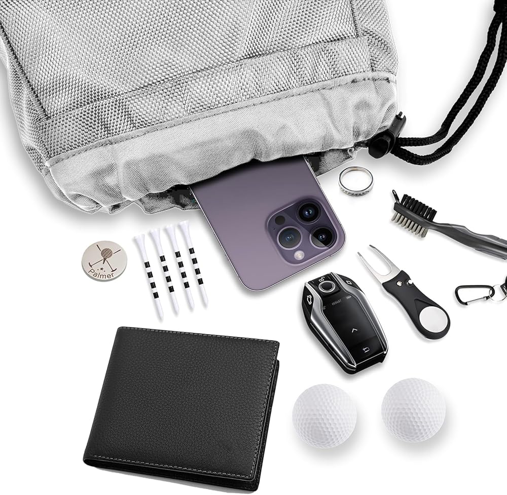 【Unique Drawstring 】Thick cinching drawstrings with Silicone toggle cord lock to quickly loosen, tighten, and lock the pouch to prevent your belongings from falling or being stolen. It is very useful and convenient for your golf sports.