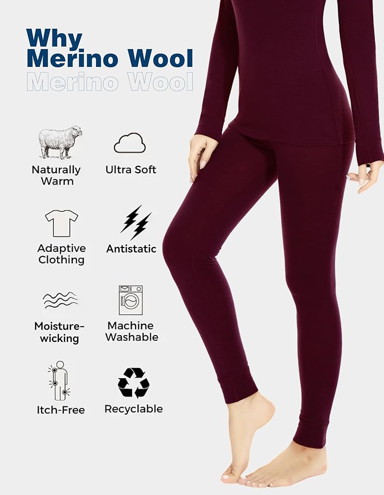 NO IRRITATION: Our merino wool has thinner, finer fibers that make it soft to the touch and cause no irritation to the skin, making it perfect for daily wear as thermal underwear.