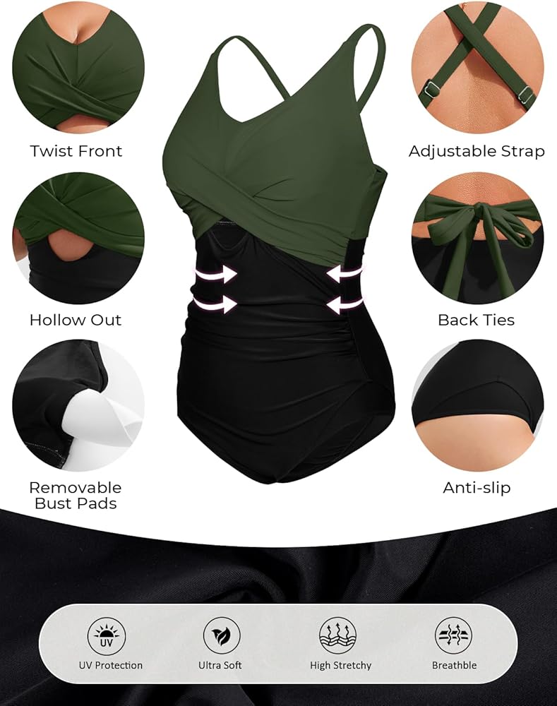 • Sexy Yet Modest Design: Our cut-out and twist front detailing adds a touch of allure without compromising on modesty. Designed to stay in place even when you're enjoying the waves, this 2025 plus size women swim suits lets you feel sexy and confident all day long