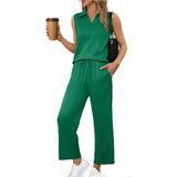 Classy Design: This active two-piece set includes a sleeveless top and wide-leg pants. It features a fashionable v-neck design, nine-point pants, elastic drawstring design, and large-capacity pockets to perfectly blend sports and casual styles, providing you with a unique fashion appearance from formal to casual.