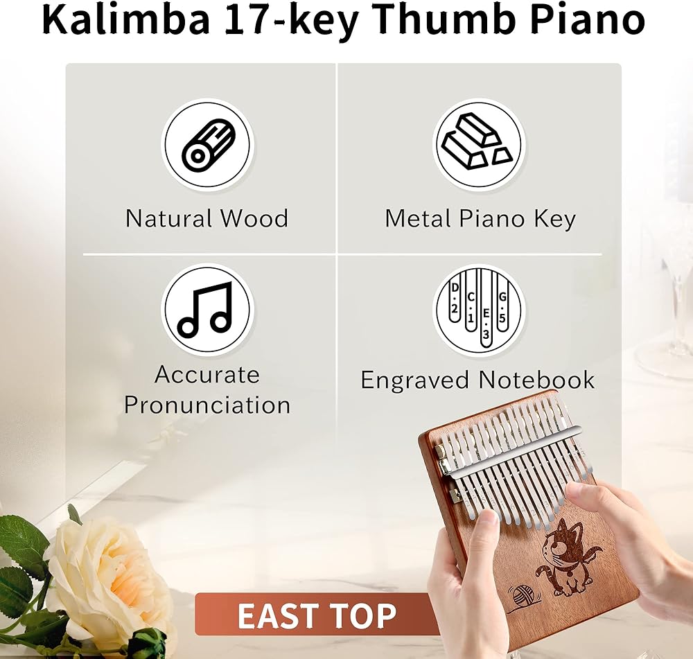 【Nice Sound】East top kalimba can make the nice sound, just need to move your thumb to touch the key,then you will feel so happy,it's a good choice to relax.