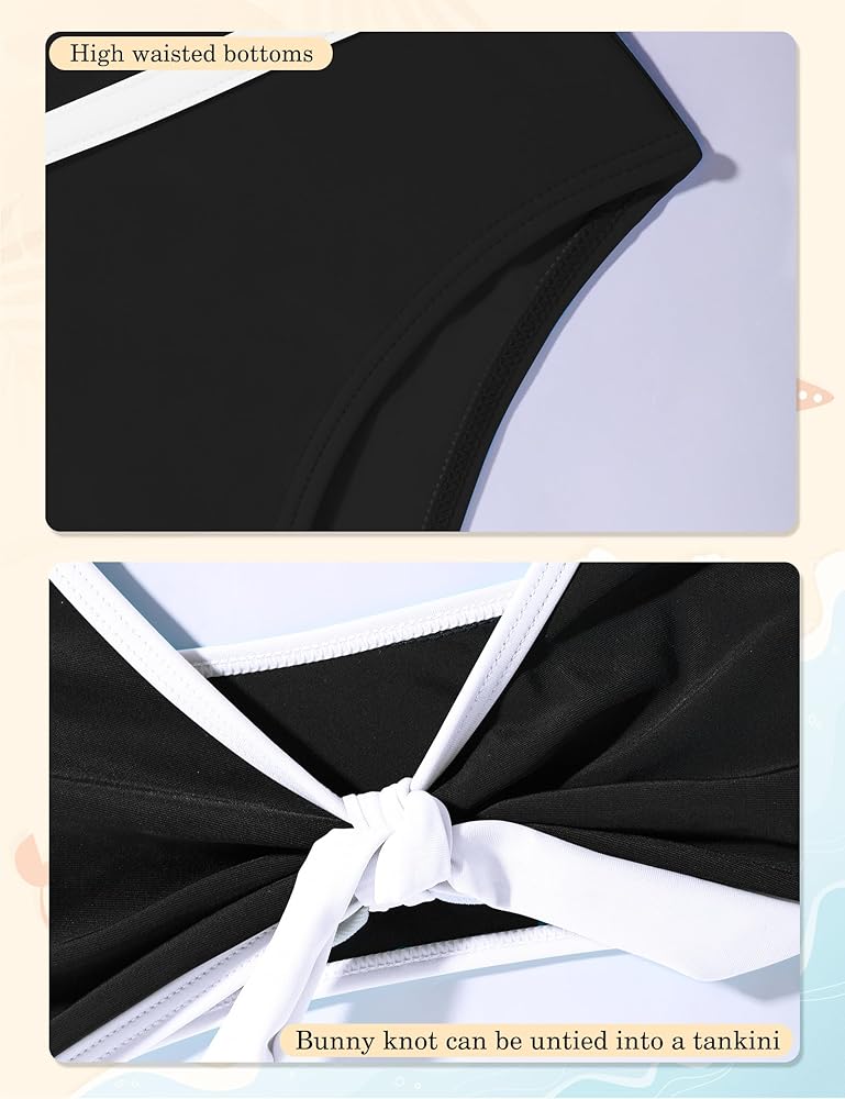 Size: This black and white bikini for girls swimsuit size 7; girls size 8 swimsuit; swimsuit for girls 8-10; swimsuit for girls 10 12; tween bathing suits 12-14; swimsuit for girls 14-16. Please check our size chart to find the size you need