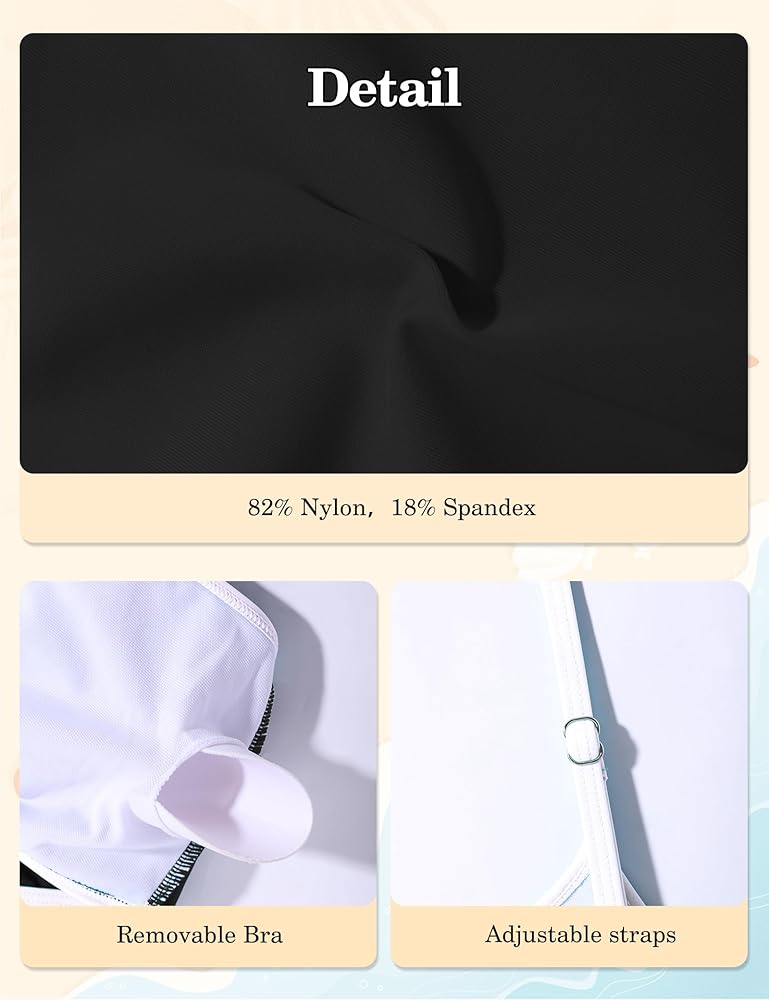 Material: This black swimsuit is made of 82% nylon and 18% spandex fabric. Quick-drying; stretchy; breathable; lightweight; soft for comfortable. Suitable for girl's sensitive skin