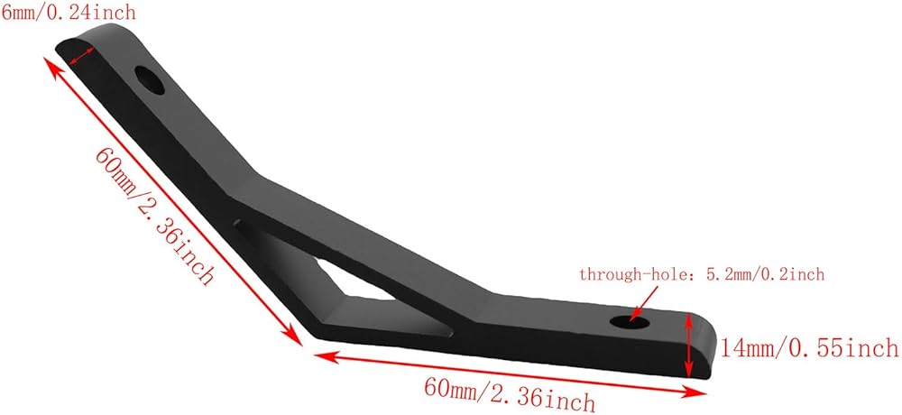 Specification: Size: 14x60mm / 0.55x2.36inch; Mounting hole diameter: 5.5mm / 0.22inch; Thickness: 6mm / 0.24inch; Suitable for 2020 series aluminium profiles; Suitable for fixing at 45 degree internal joints.