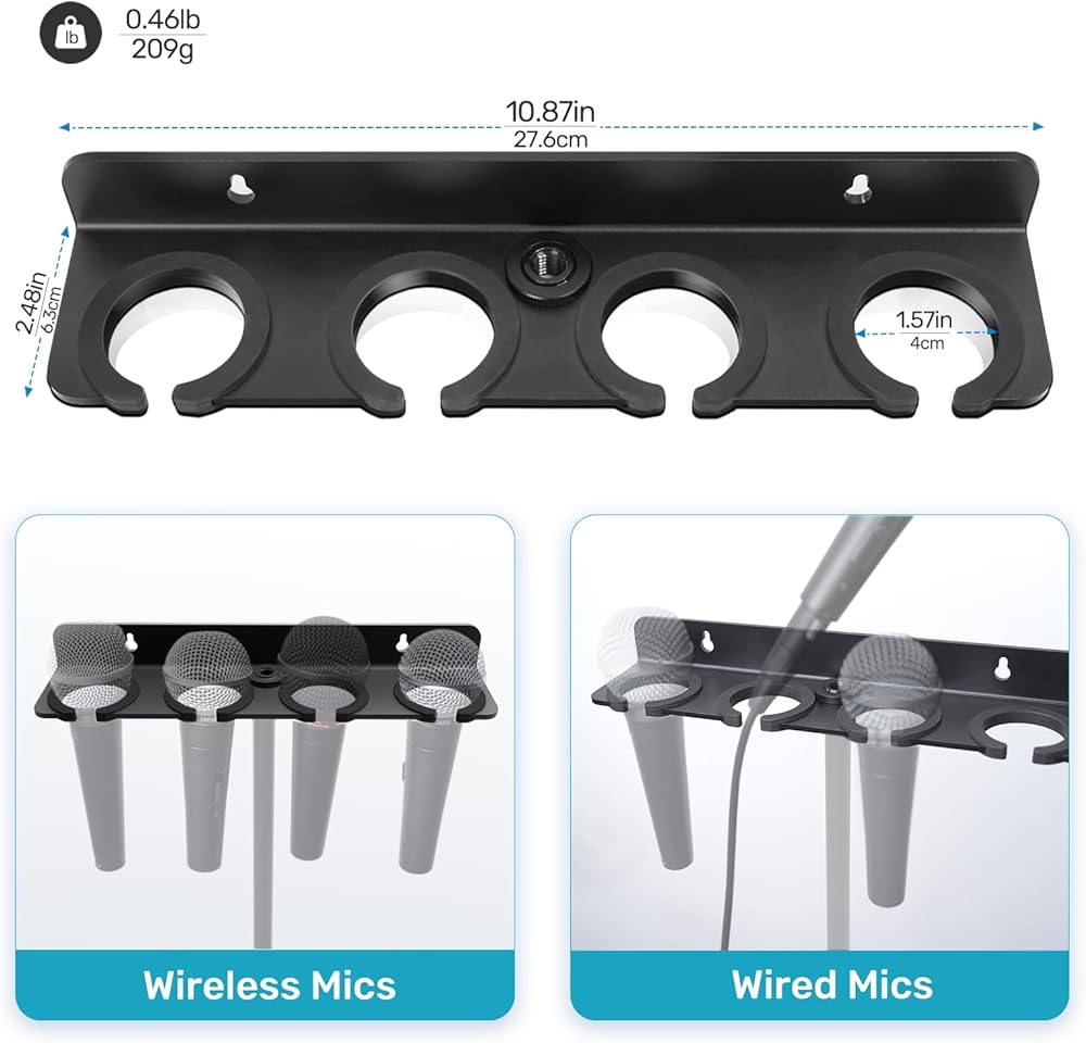 [Essential Accessory for Musicians] This stand is the perfect solution for performances, home studios, churches, or professional recording setups. It safely holds up to 2 handheld microphones—whether dynamic, wired, or wireless—making it ideal for musicians, church services, DJ, and karaoke enthusiasts.
