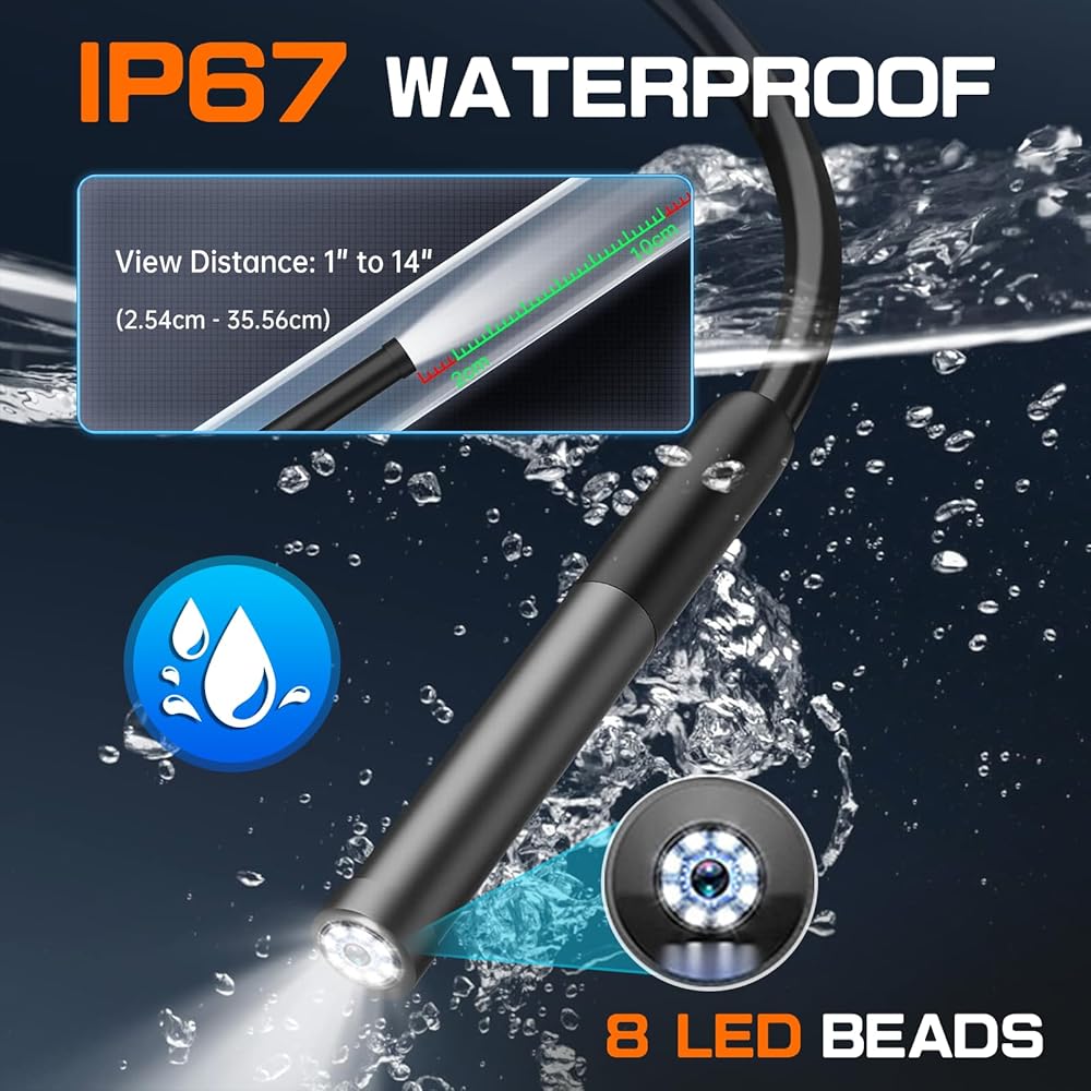✅【Ultra Small Lens, Super Clear Vision】This video scope camera probe is 0.33” (8.5mm),640x480dpi Image Capture, freely access to lots of narrow hard-to-reach areas and places. Autel MV108S is still durable enough to withstand repeated use. Also its waterproof is great for inspection in water pipes and wet spaces down to 3.28ft (1m)