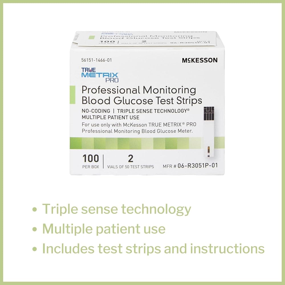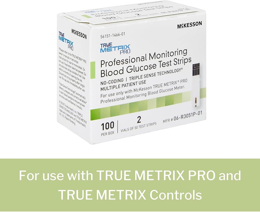 Strips are for use with the TRUE METRIX PRO Professional Blood Glucose Monitoring System (sold separately), which measures glucose in fresh capillary whole blood samples; uses Triple Sense Technology