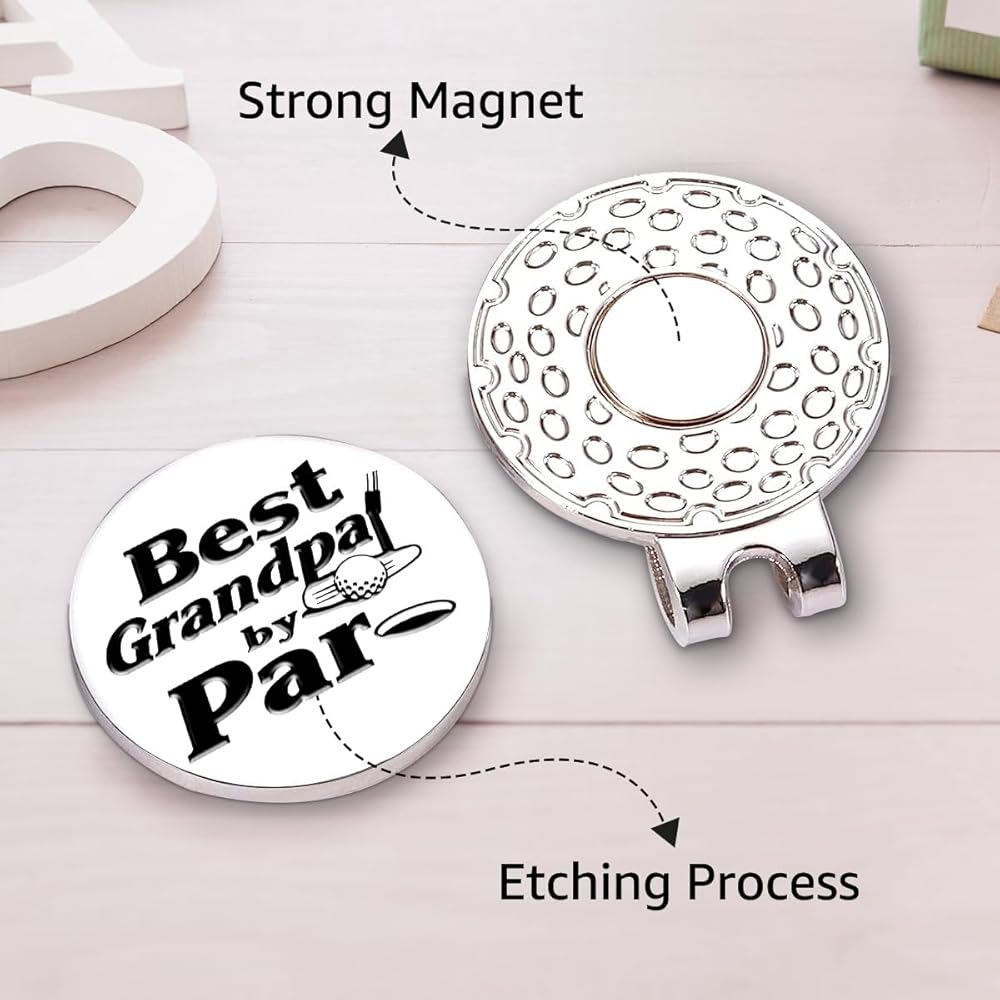 Hafhue Best Grandpa by Par Golf Ball Marker with Magnetic Hat Clip, Funny Golf Accessories and Golf Gifts for Men Grandpa, Birthday Christmas Retirement Gifts for Golf Fan Golfer Golf Lovers (GM042)