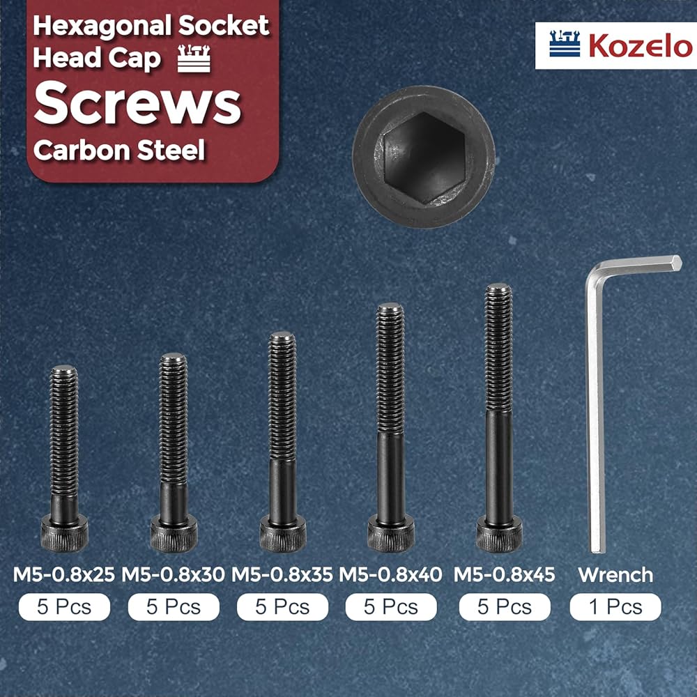 1- PACKAGE CONTENTS - 25 packs of hex socket head cap bolts screw kit; Thread size: M5x60/65/70/75/80mm, Please refer to the pictures for specific products and sizes; The quantity and size are enough to meet your needs on different occasions.