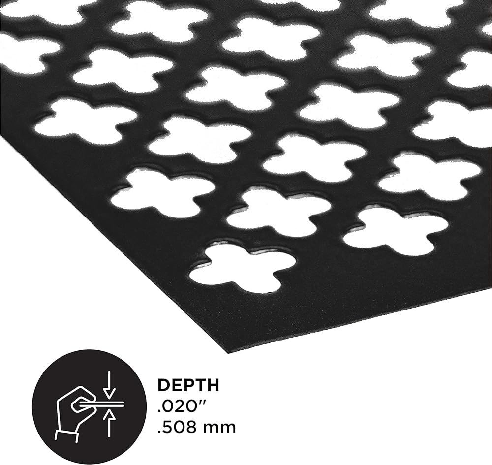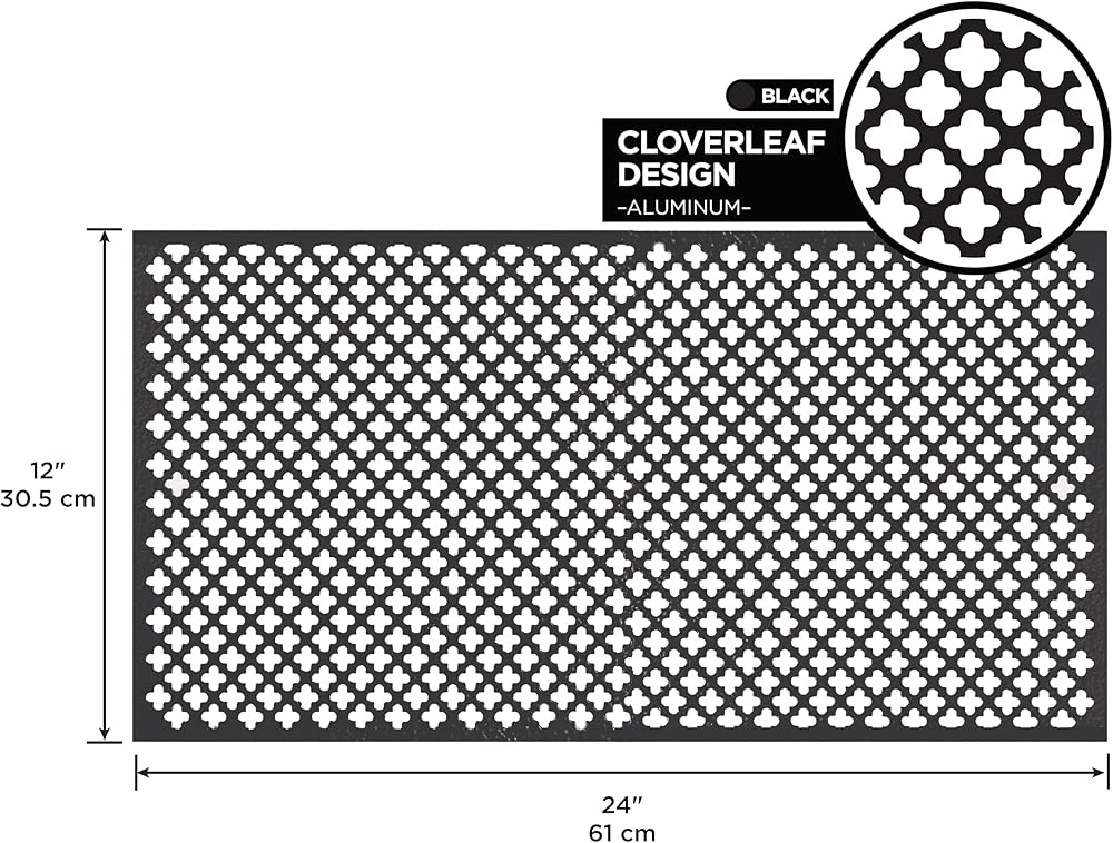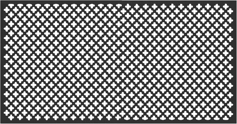 Easy to cut, form and fabricate. Aluminum material will not rust or corrode. Perforated, decorative design is great for door and window security, plumbing, heating and ventilation projects, radiator heater enclosures, craft and hobby projects, room dividers, cabinet ventilation and more. Recommended for indoor or outdoor uses.