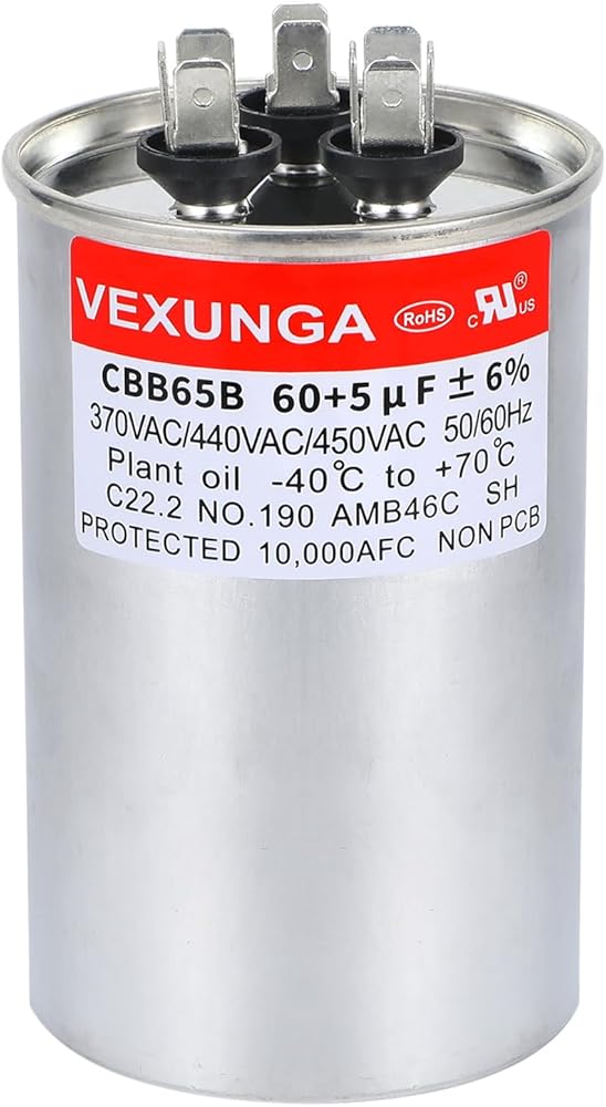 VEXUNGA 70+5 uF ±6% 370/440/450 VAC dual run start capacitor replacement for ALL 370 & 440 & 450 Volt capacitors - MEET ALL NEEDS.