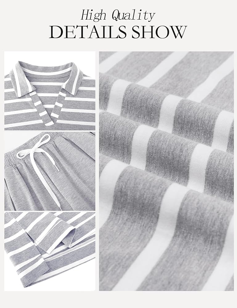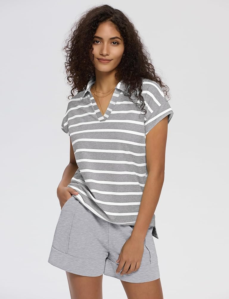 Fashion and Comfort: The two-piece sets for women feature polo V-neck shirts with cap sleeves and elastic drawstring waist shorts with pockets. The summer short sets are made of high-quality, soft, and durable material.