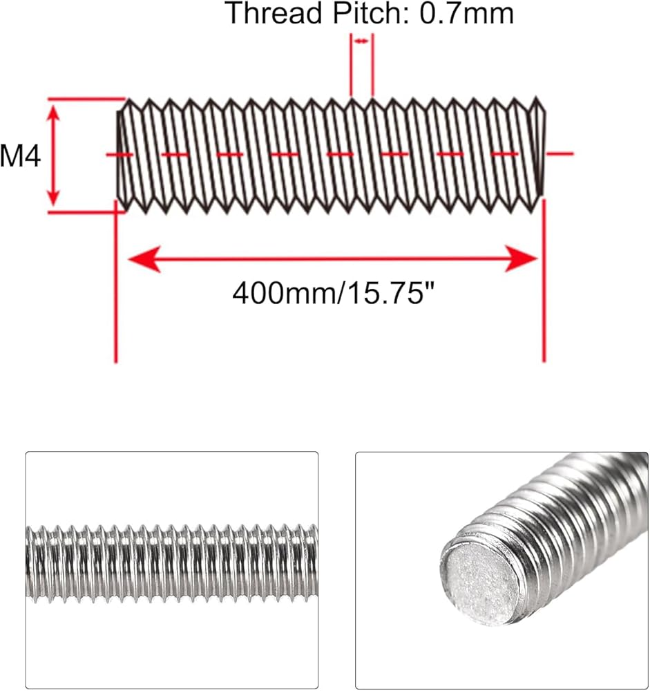 [What You Get] - You will receive 4pcs of Fully Threaded Rods with the size in following: Thread Dia: M4; Thread Pitch: 0.7mm; Total Length: 300mm/11.81-inch.