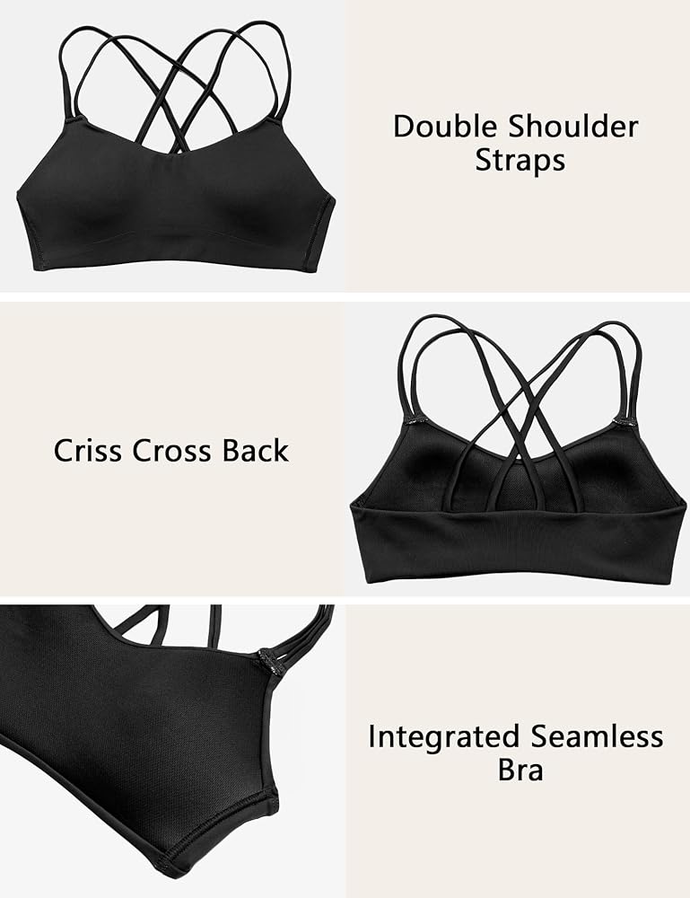MEIVSO Women’s Double Strap Seamless Sports Bras Cross Back for Yoga Tennis Workout