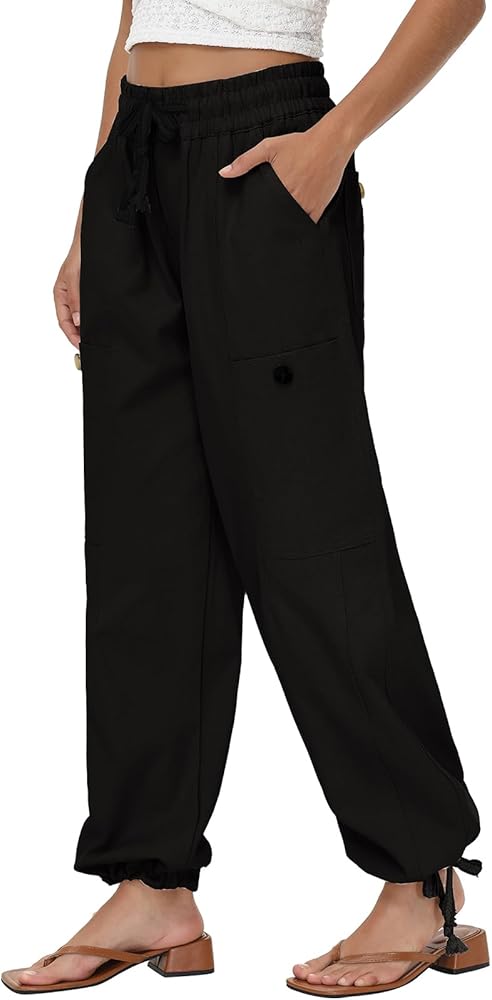 Popular Design: The cargo joggers pants for women features elastic waist with a tie, patch pockets, adjustable bottom and angled dart seams. Wide leg pants for woman is designed for lazy weekends or after-work evenings.