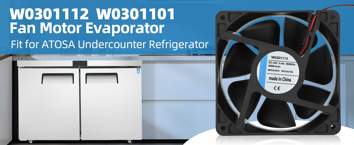 【Compatible models】W0301112 W0301101 Fan Motor is compatible with ATOSA Undercounter Refrigerator MGF8401, MGF8401GR, MGF8402, MGF8403, MGF8404, MGF8405, MGF8405GR, MGF8406, MGF8415, MGF8417, MGF8419, MSF8307GR, MSF8308GR. MSF8307GR, MSF8308GR, please check whether your refrigerator model is suitable before purchase