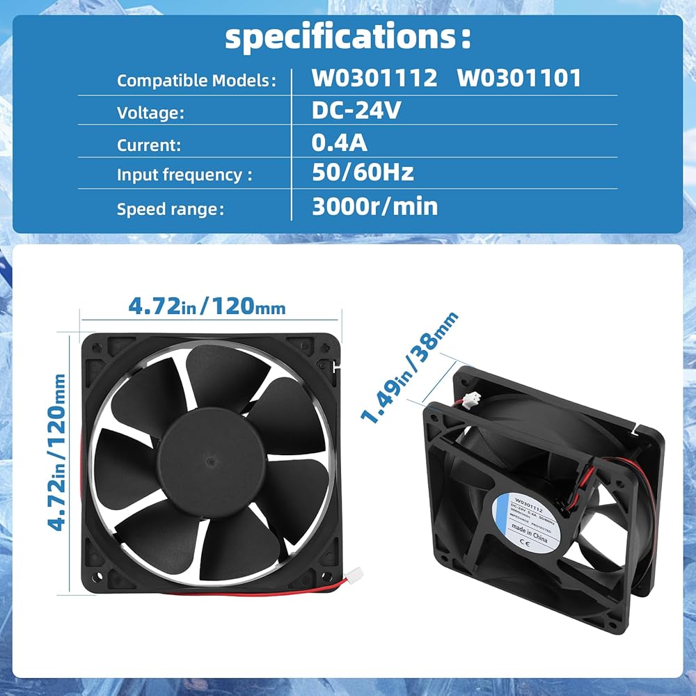 (2PC) W0301112 W0301101 Refrigerator Evaporator Fan Motor for ATOSA Undercounter Refrigerator MGF8401 MGF8401GR MGF8402 MGF8403, DC24V, 0.4A, 50-60HZ, Energy Saving and Quiet, Complete Set of Parts