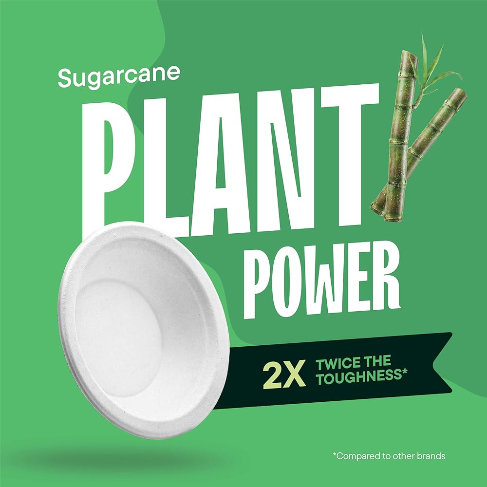100% Sugarcane Fiber: The 12oz bowl is made of 100% sugarcane fiber, a sustainable, renewable, and biodegradable material. A great alternative to traditional paper or plastic, The disposable bowl offers the same sturdy function and easy cleanup, yet It s completely Tree- and plastic-free.