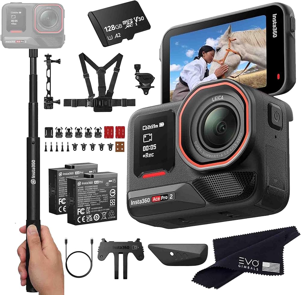 Insta360 Ace Pro 2 Snow Bundle- 8K Waterproof Action Camera Co-Engineered with Leica, Flagship 1/1.3" Sensor, 8K30, 2.5" Flip Screen|Includes Snow Bundle, Invisible Selfie Stick (128GB)