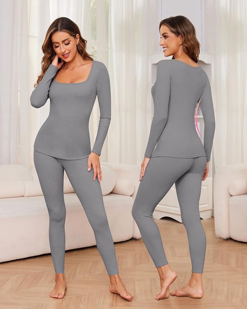 Square Neck Base Layer Set: Fleece lined base layer tank top/winter shirts/winter tank tops combine style and functionality, experience the perfect combination of warmth, comfort, and flexibility in one go-to underwear ensemble.