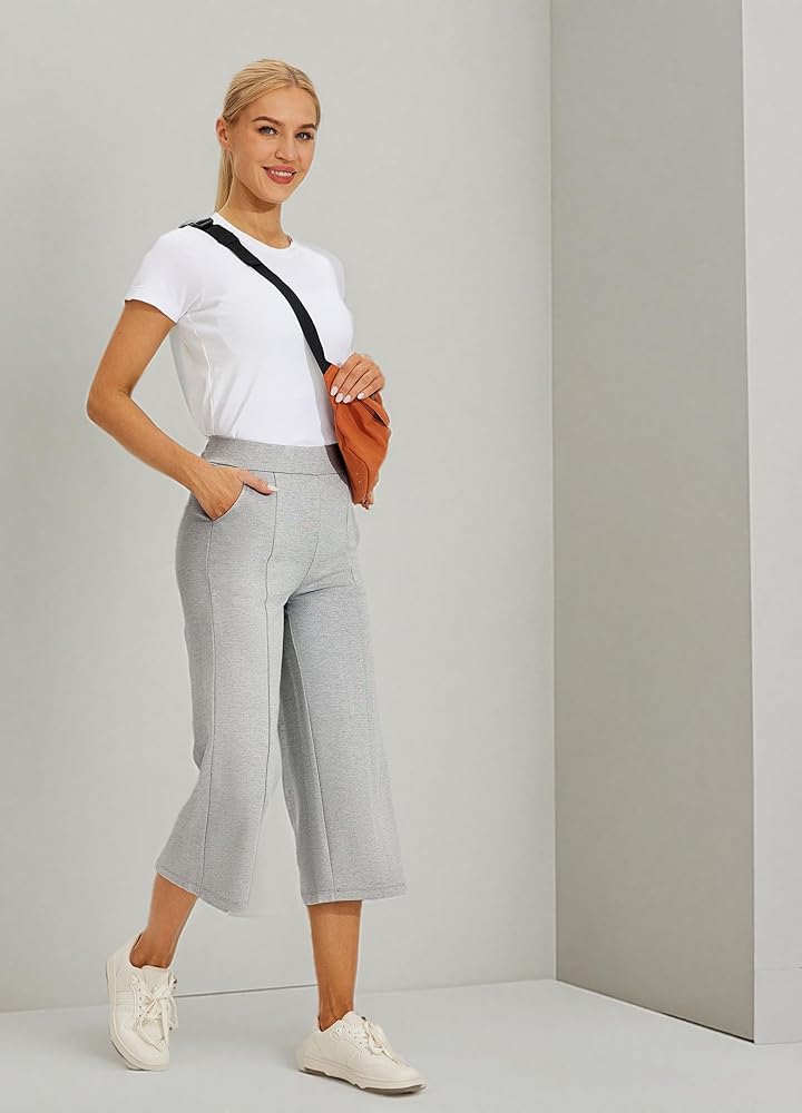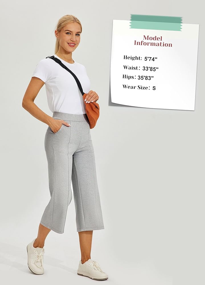 2.8-inch elastic waistband with tummy control delivers a comfortable fit and stay-put confidence. These Womens wide leg capris offer a wide leg design that can be dressed up more with pumps, flats or athletic shoes, match well in suits, shirts or daily wear