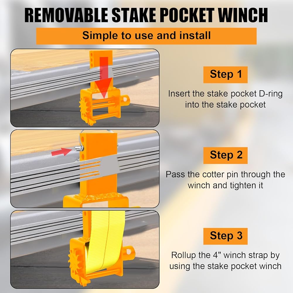 Simple Installation Process: Designed for quick installation into embedded weight slots on trailer sides, this winch fits most stake pockets, whether they are flush or on the outside, making it an ideal choice for any trailer owner.