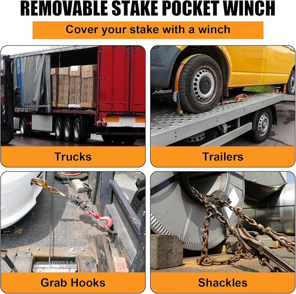 Multifunctional Application: Perfect for a variety of trailer and cargo securing tasks, including use with flatbeds, trailers, trucks, and winches. This trailer stake pocket winch is the ultimate solution for your cargo safety needs. Feel free to reach out for any inquiries!