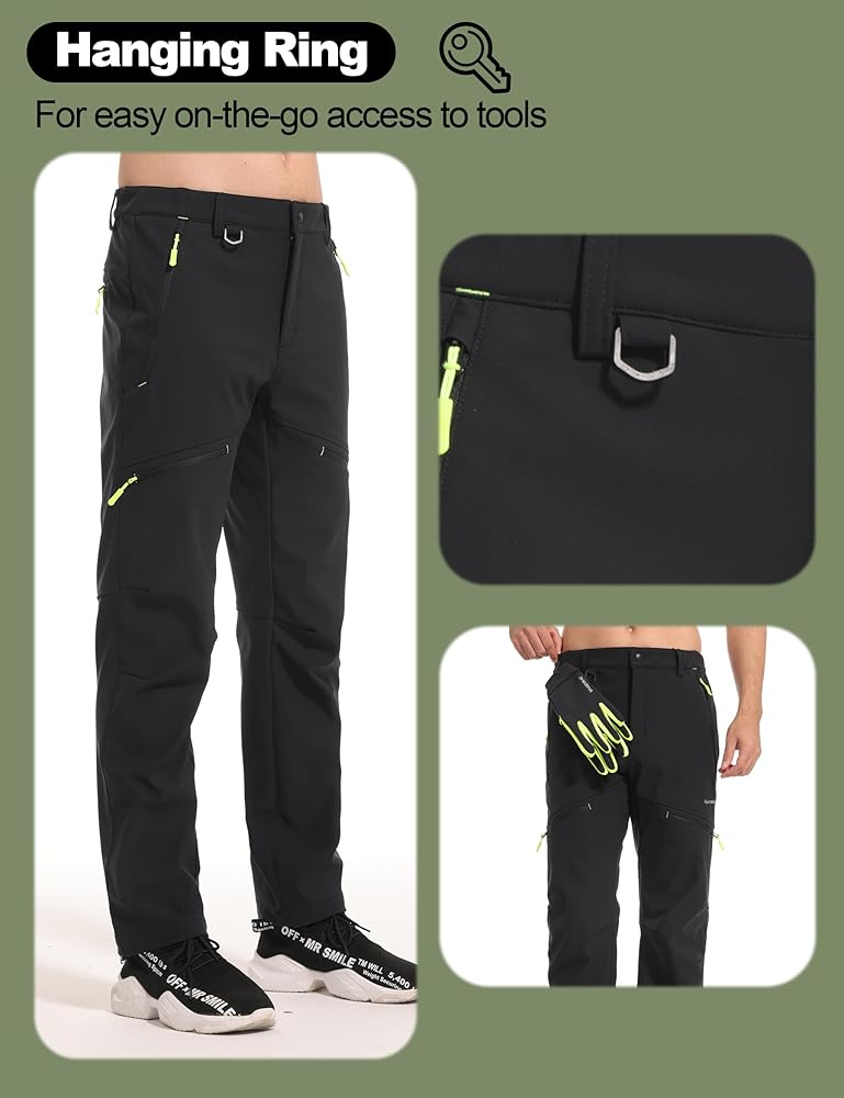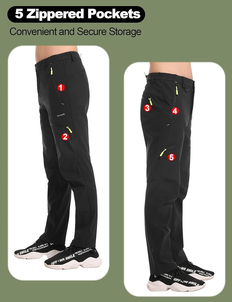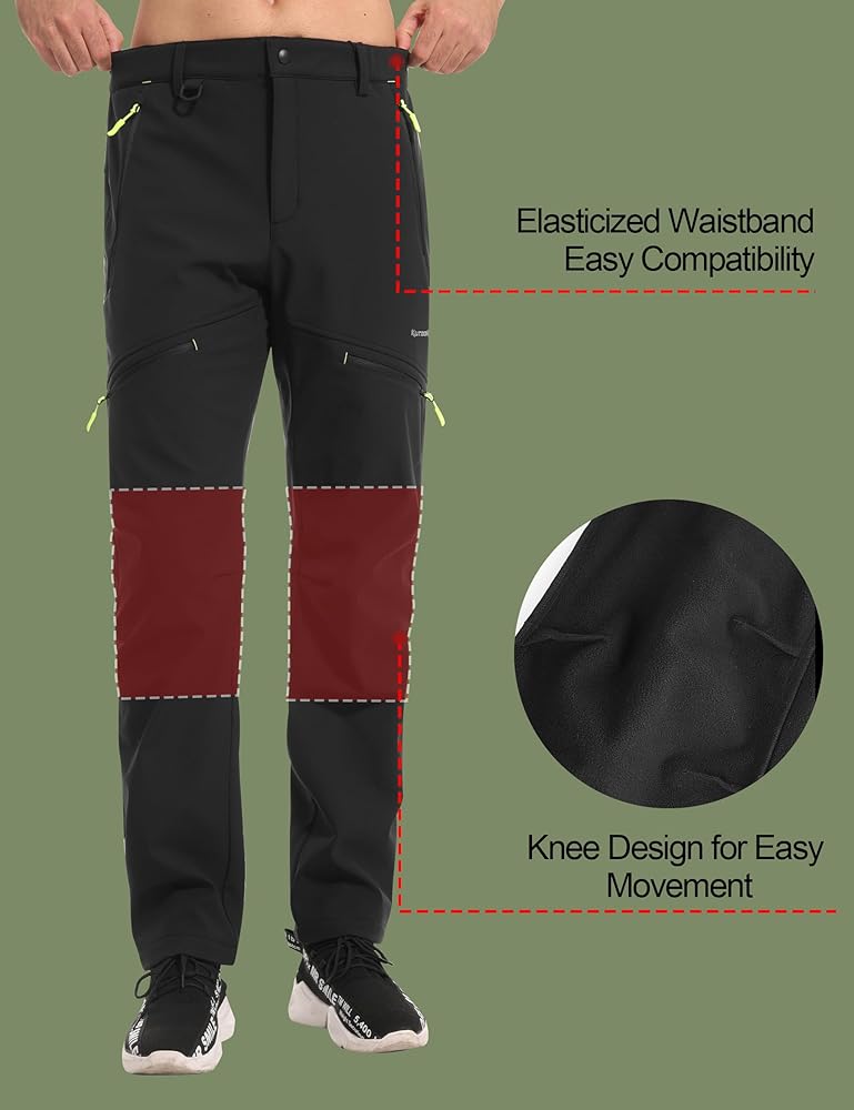 🔥 【Warm & Breathable】--- KUTOOK winter men's softshell pants are made of high-quality fabric, with a fleece lined design and breathability, providing you with a warm and comfortable wearing experience in cold weather.