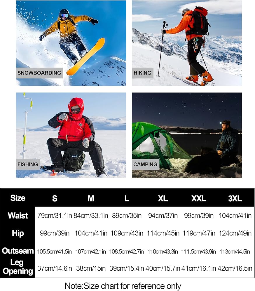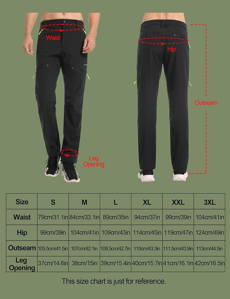 🔥 【Occasions】--- KUTOOK men's winter softshell pants are suitable for hiking, camping, running, cycling, fishing, and any outdoor activity you enjoy. You can refer to the size chart when selecting the size.