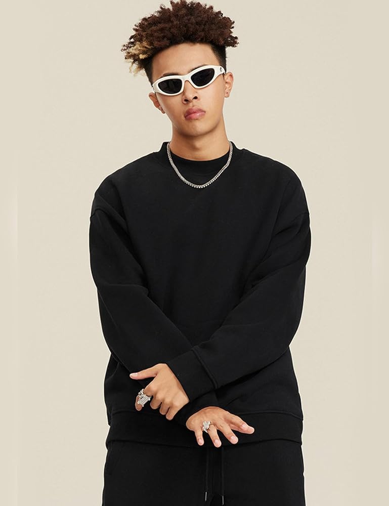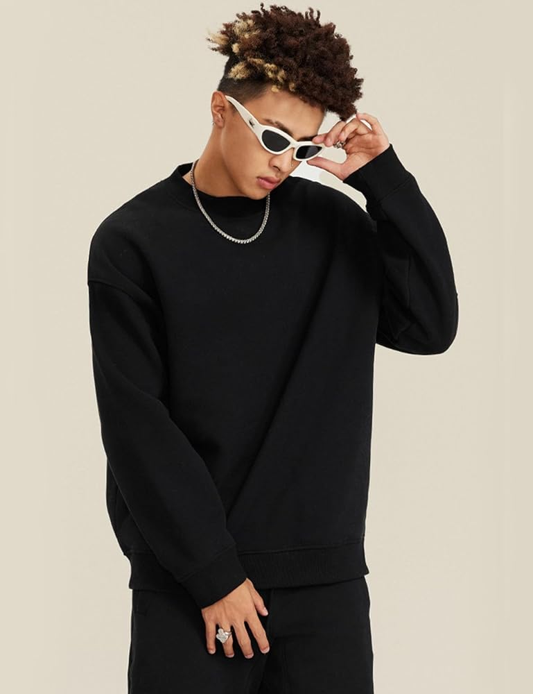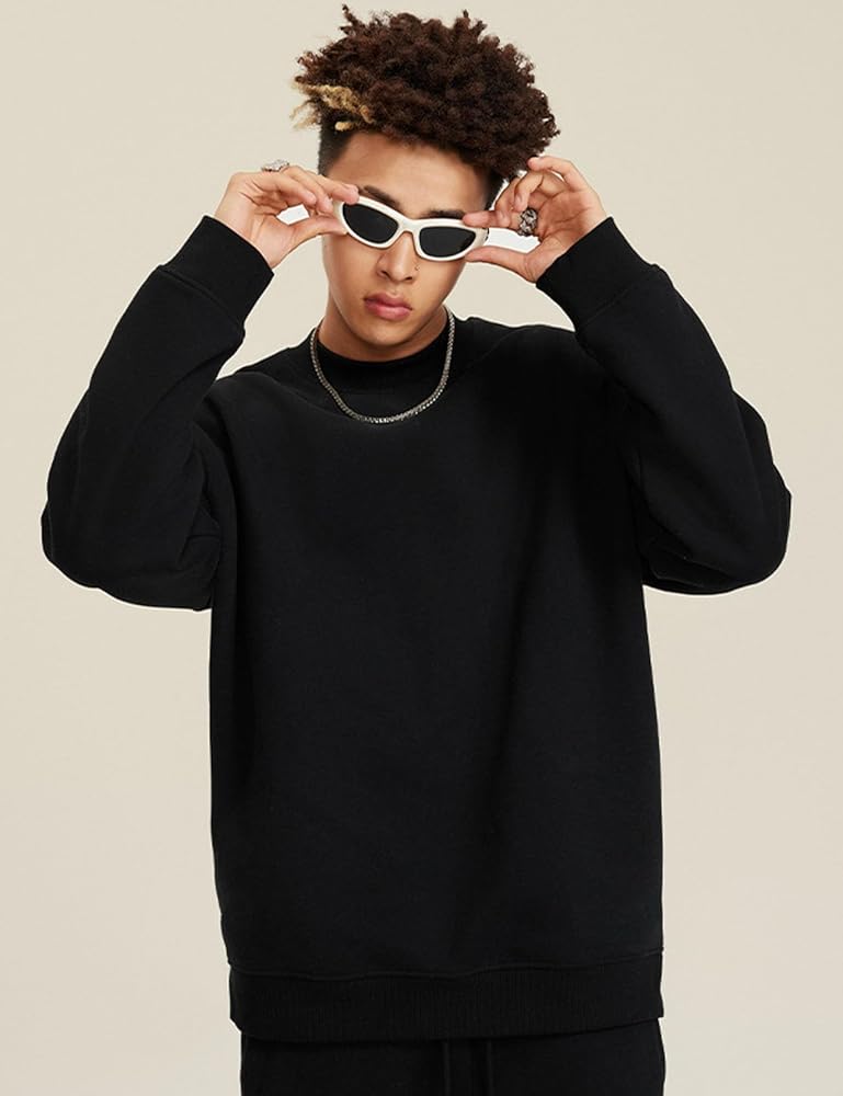 【Match】Mens fleece sweatshirt, sweatshirt for men, layered it with a basic tshirt for a trendy dressy look, pair with jeans, sweatpants or jacket coats for casual fall winter look, perfect for throwing on and running errands, basic versatile crewneck sweat shirts