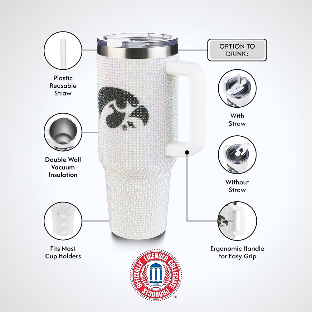 Officially Licensed: Stay hydrated and show off your team spirit with our officially licensed stainless steel bling tumbler with handle, lid, and straw.