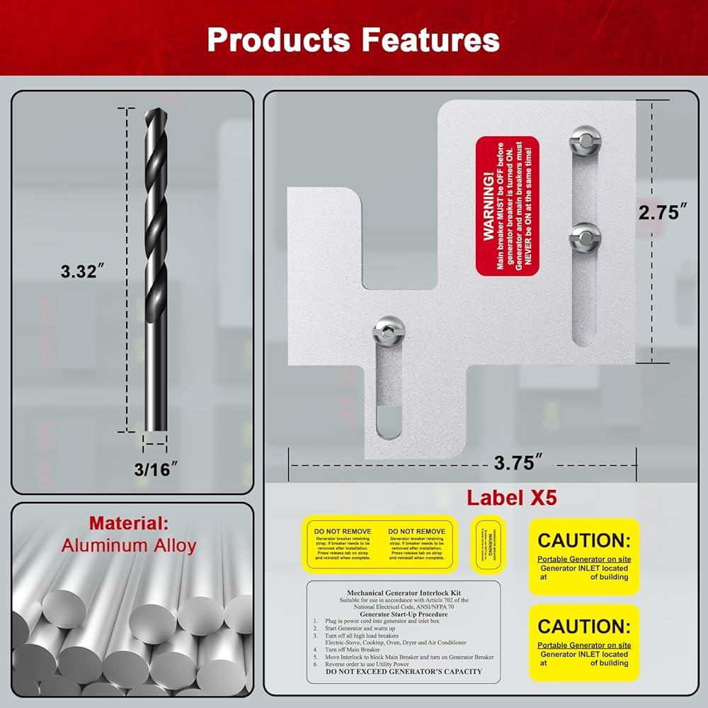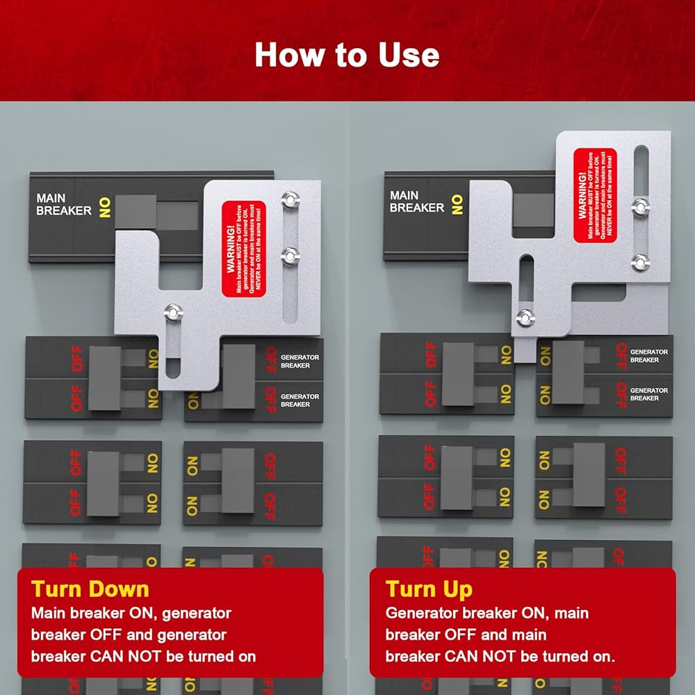 【Easy to Install】The generator interlock kit offers a 3/16 drill bit, sturdy steel that goes through breaker panel easily. Easy to install, no need extra control box or wiring. Simply contact us back if our product ever fails you and we'll mail you a new original replacement.