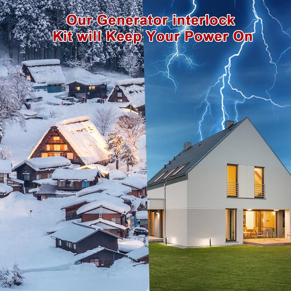 【Safety Generator Interlock kit】This kit avoids the inconveniences that an unexpected power outage can cause. It is used to direct generator power to any circuit within your home safely. It is truly a great way to safely connect up a generator while assuring that you have access to all of your home electrical appliances.