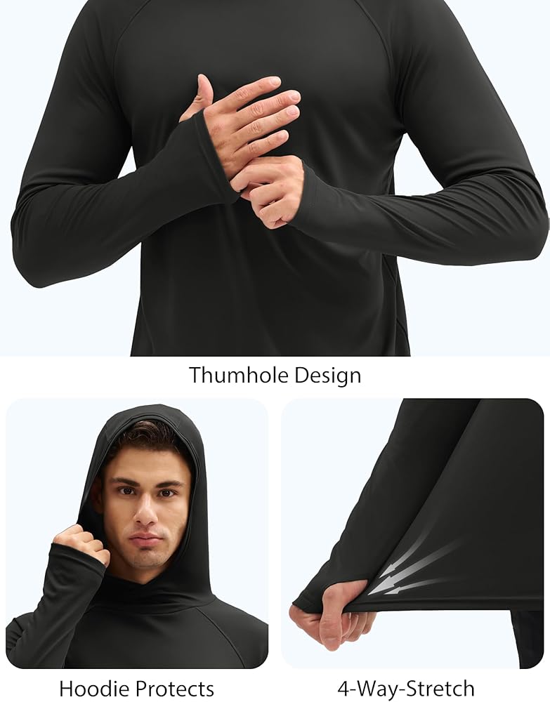 Functional Design: The unique design of the collar area effectively prevents sunburns on the neck; the raglan sleeve design highlights the sporty style; the thumbholes provide all-around sun protection for your hand.