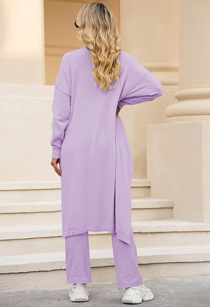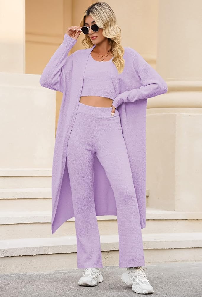 Solid fuzzy 3 piece loungwear for women, soft, warm and fashion