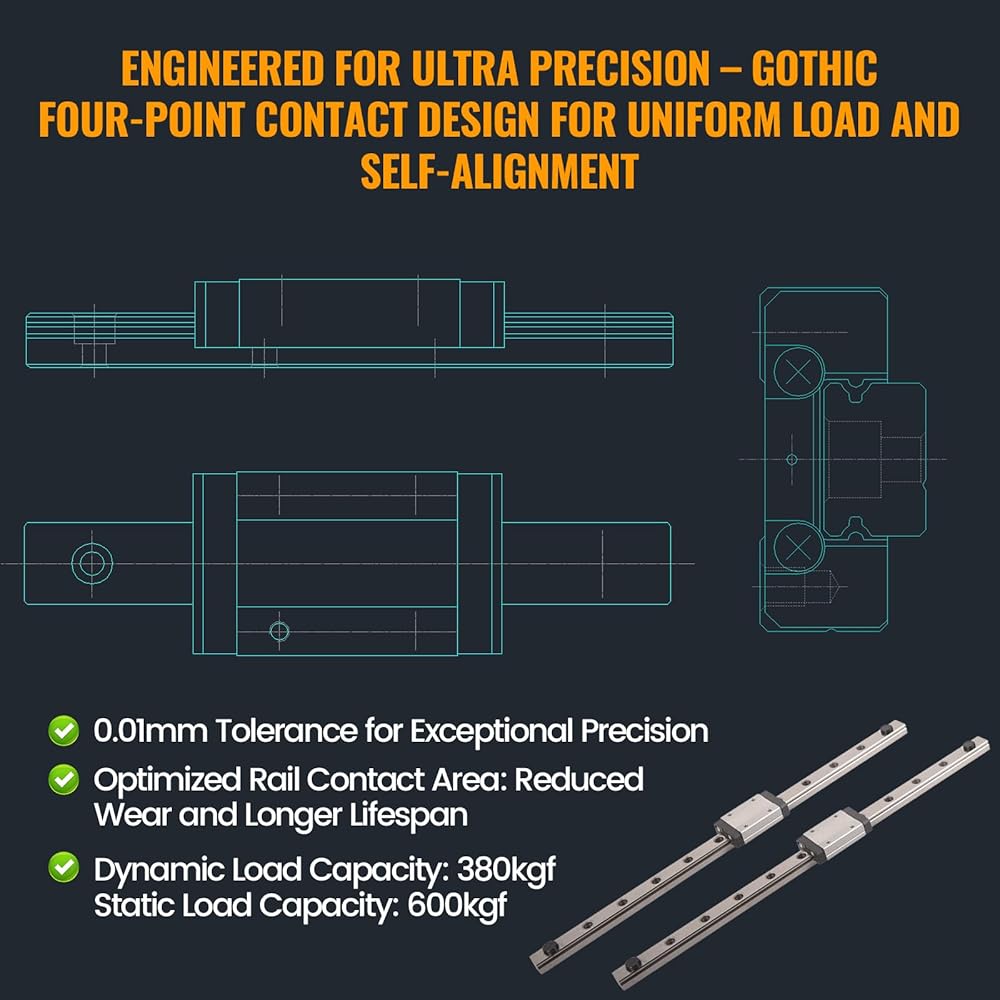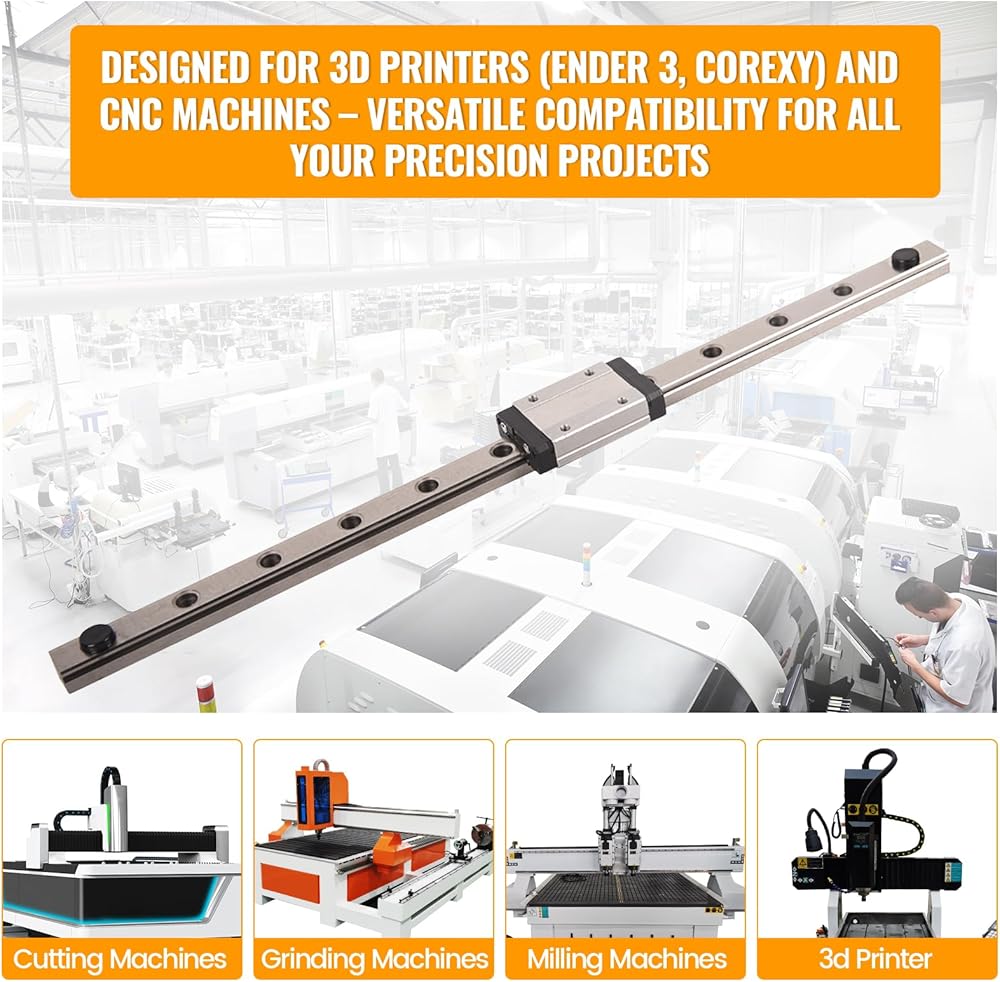 Versatile Compatibility with 3D Printers and CNC Machines - Suitable for models such as Ender 3, CoreXY, and Delta printers, this linear rail kit supports a wide range of applications, making it ideal for hobbyists and professionals alike.
