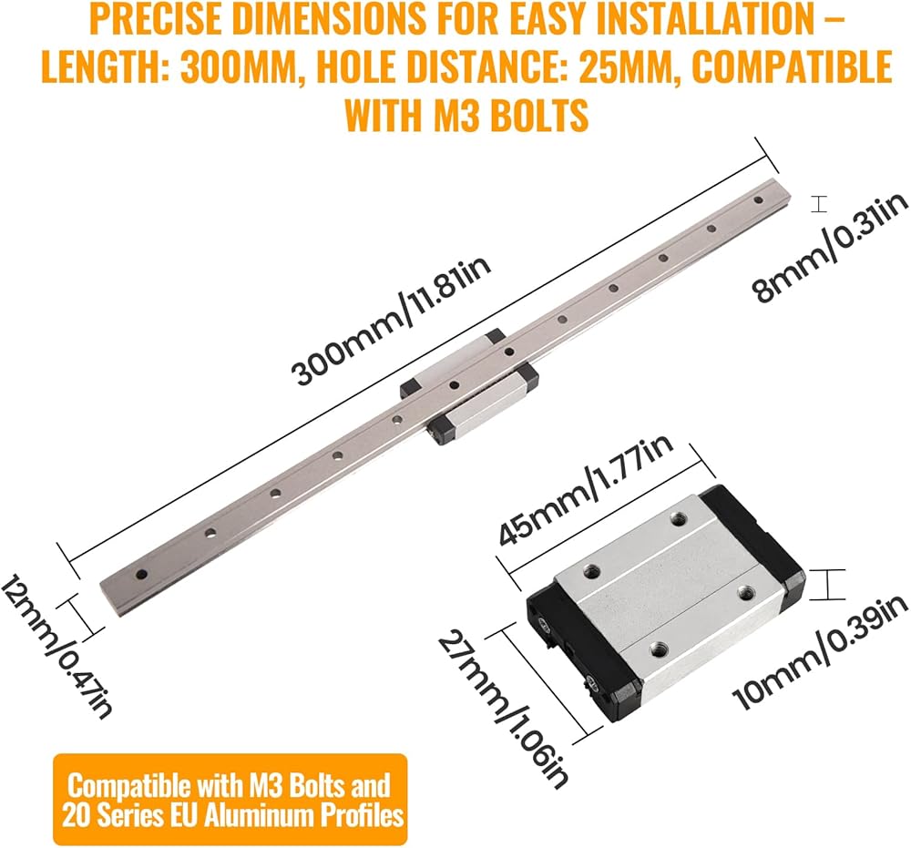 SUZANNE MGN12H 300mm Linear Rail Guide with 1 Stainless Steel MGN12H Carriage Block, Precision CNC and 3D Printer Upgrade, Ideal for Ender 3, CoreXY, Delta, and Machining Equipment