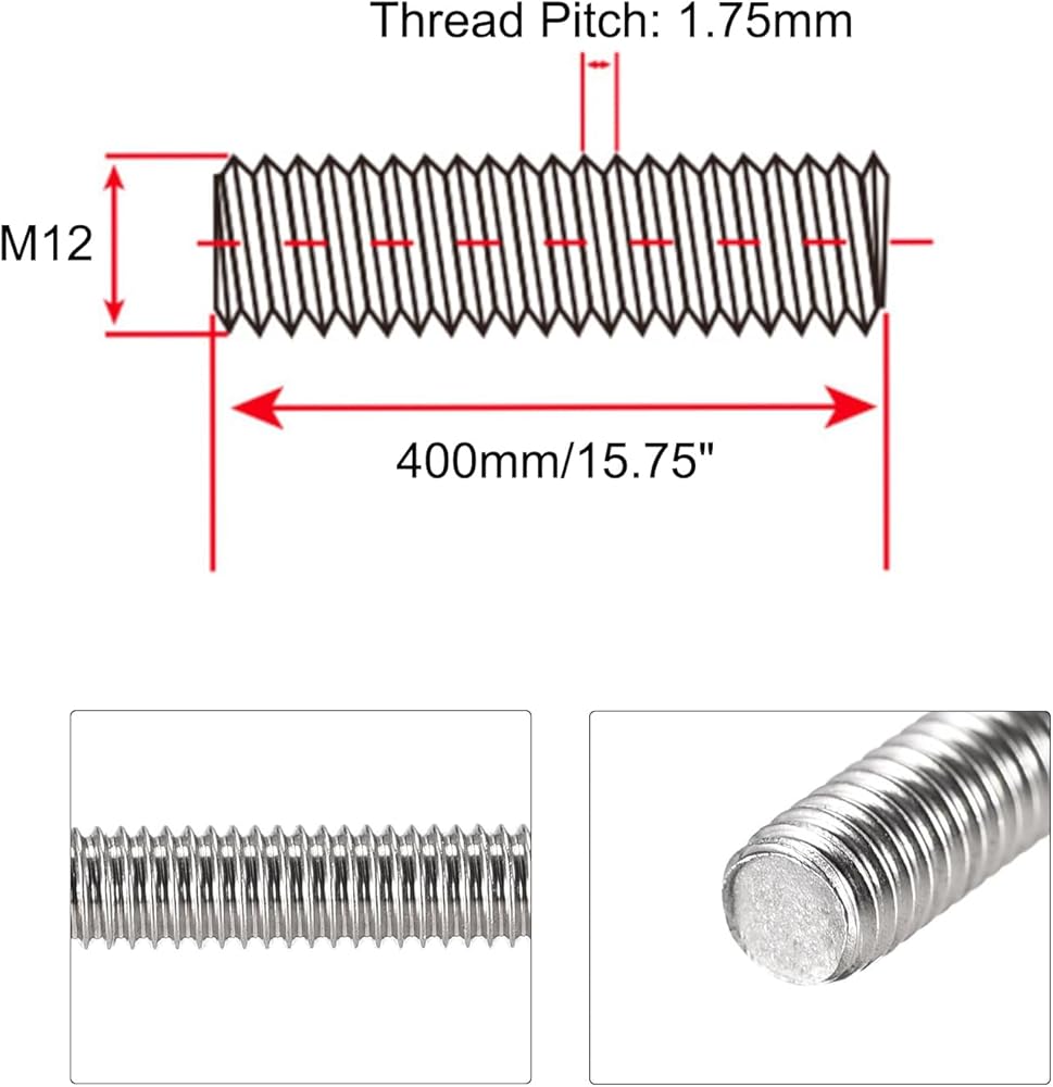 [What You Get] - You will receive 1pcs of Fully Threaded Rods with the size in following: Thread Dia: M12; Thread Pitch: 1.75mm; Total Length: 300mm/11.81-inch.