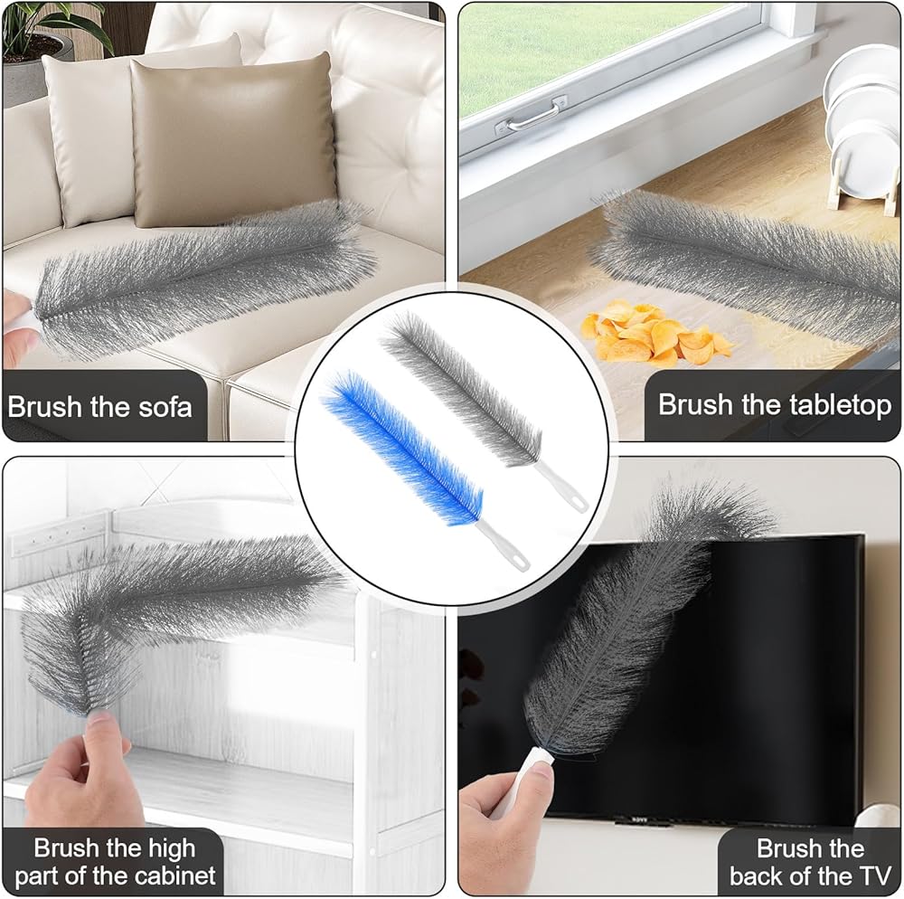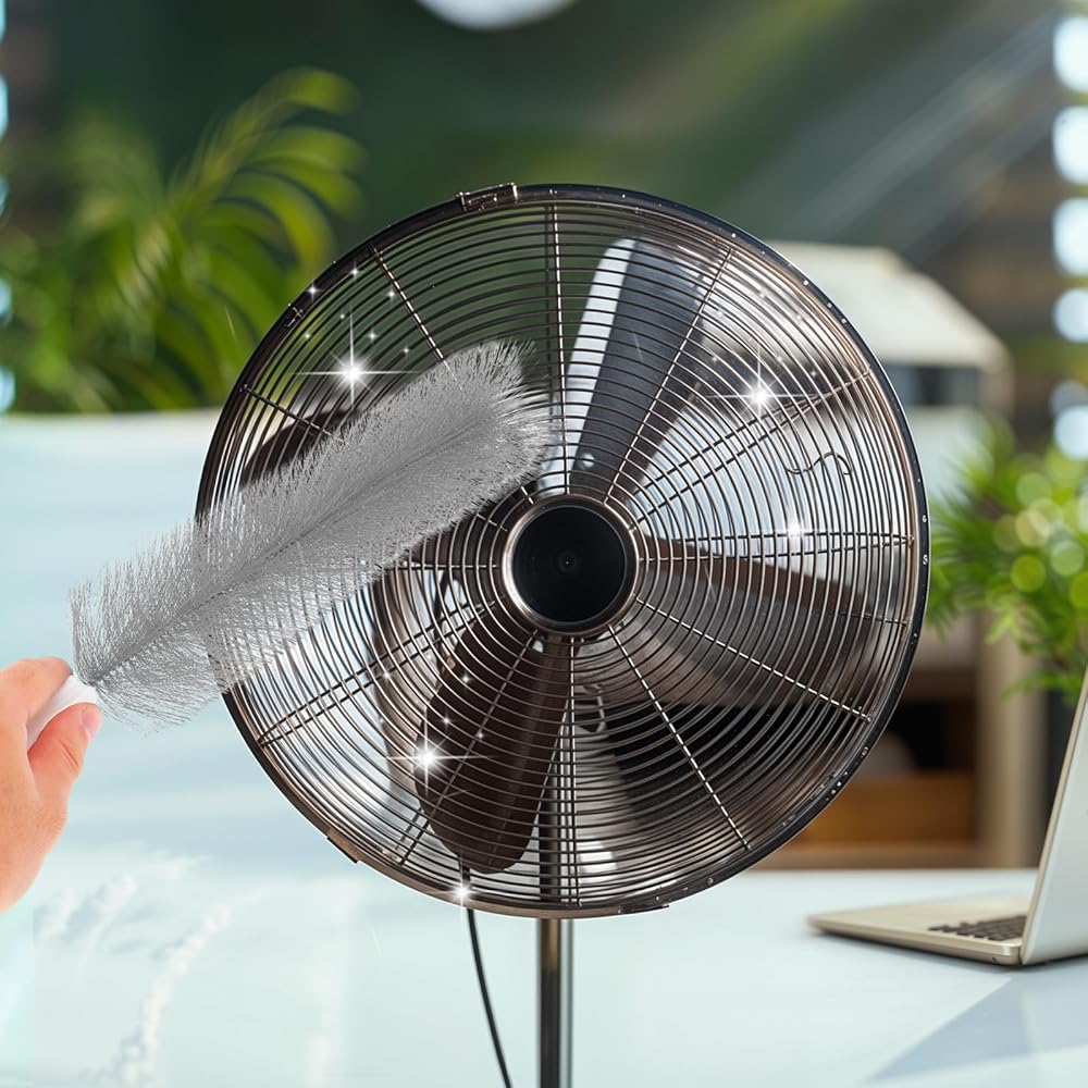 【Bendable Design】The fan cleaner brush can bend to any angle and magically return to its original shape, making it perfect for removing dust from corners and tricky areas. It easily cleans hard-to-reach places, ensuring your cleaning chores are thorough. It is ideal for cleaning spiderwebs from fans, windows, air conditioning units, car vents, curtains, fan shutters, and those hard-to-reach corners.