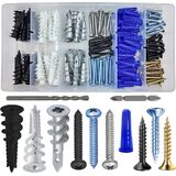 PACKAGE QUANTITY: 60 pcs #8*1 blue Drywall Plastic Anchors, 20 pcs #8*1 Yellow Zinc Flat Head Wood Screws,20 pcs #8*1 Black Zinc Flat Head Wood Screws, 20 pcs #8*1 304 Stainless Steel Flat Head Wood Screws.