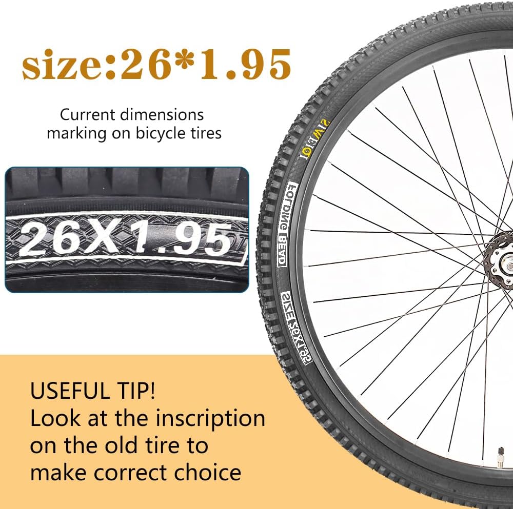 Size: 26 x 1.95 inch mountain bike tire; Color: black; PSI range 30 to 50