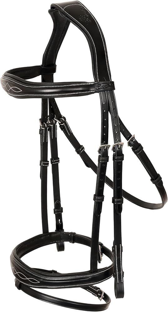 Stunning streamlined anatomic structure fabricated with peerless manual workmanship which imparts foot-taping looks to it. A rider can't resist his passion to grab this magnificent piece of art on viewing it just once. Classically designed fancy Square raised anatomic-shaped English bridle from the house of Exion.