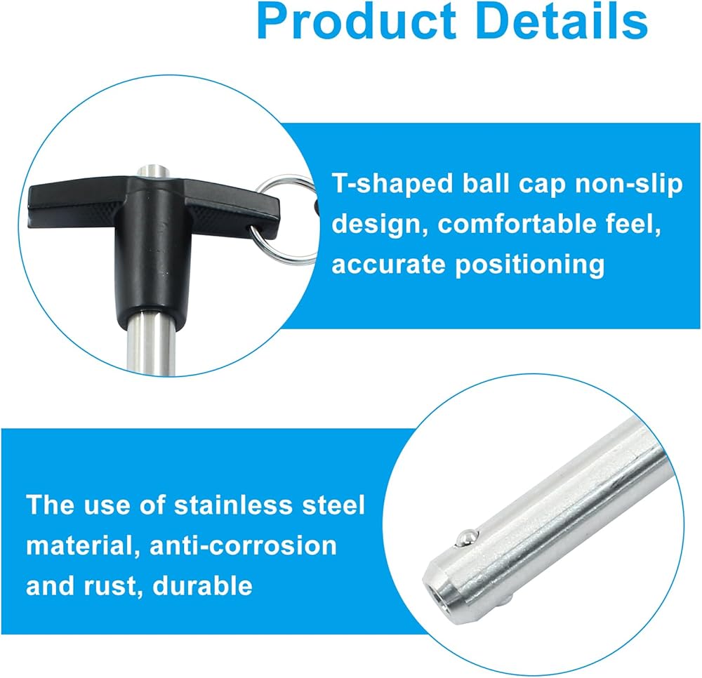 T Handle Quick Release Pin 3/8 Inch Diameter, 90 mm Working Length Push Button Locking Pin, Stainless Steel Ball Lock Pin with Lanyard Cable for Speaker, Industrial, Fixture