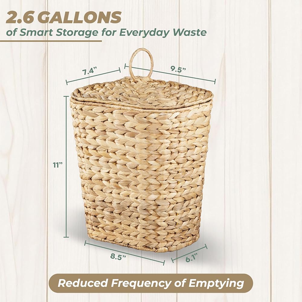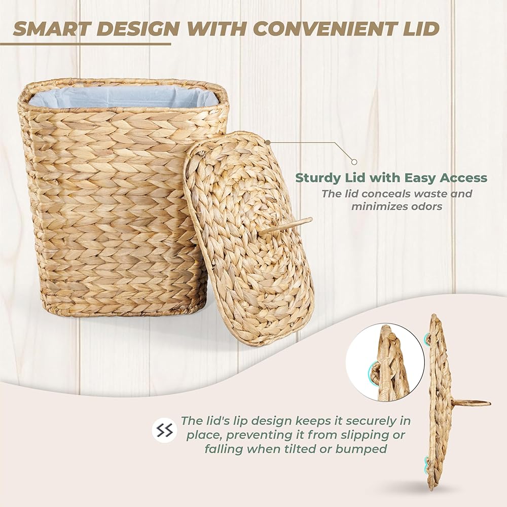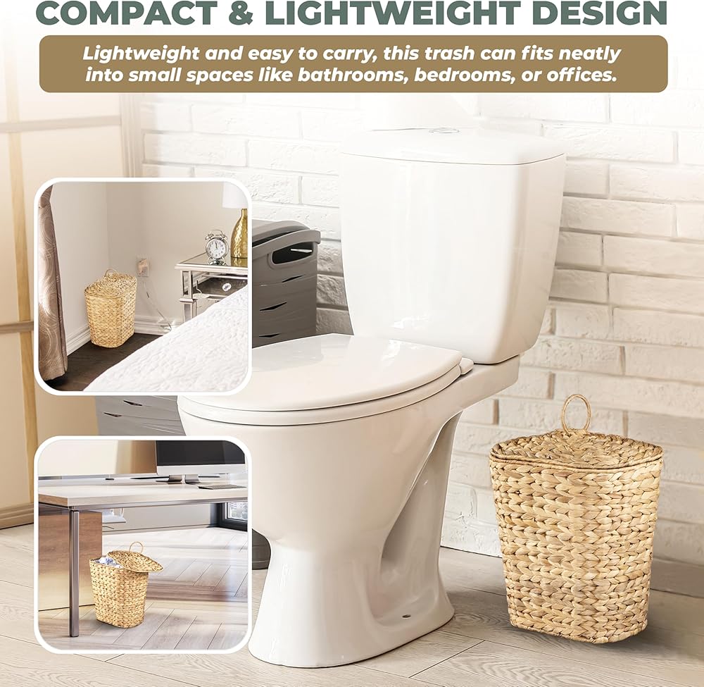 🛠️ Convenient Lid with Secure Ring Handle: The handwoven lid is designed with a strong ring handle for effortless lifting and closing. The snug fit prevents odors from escaping, keeping your space fresh and tidy.