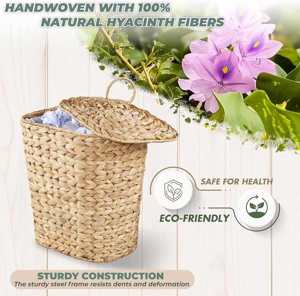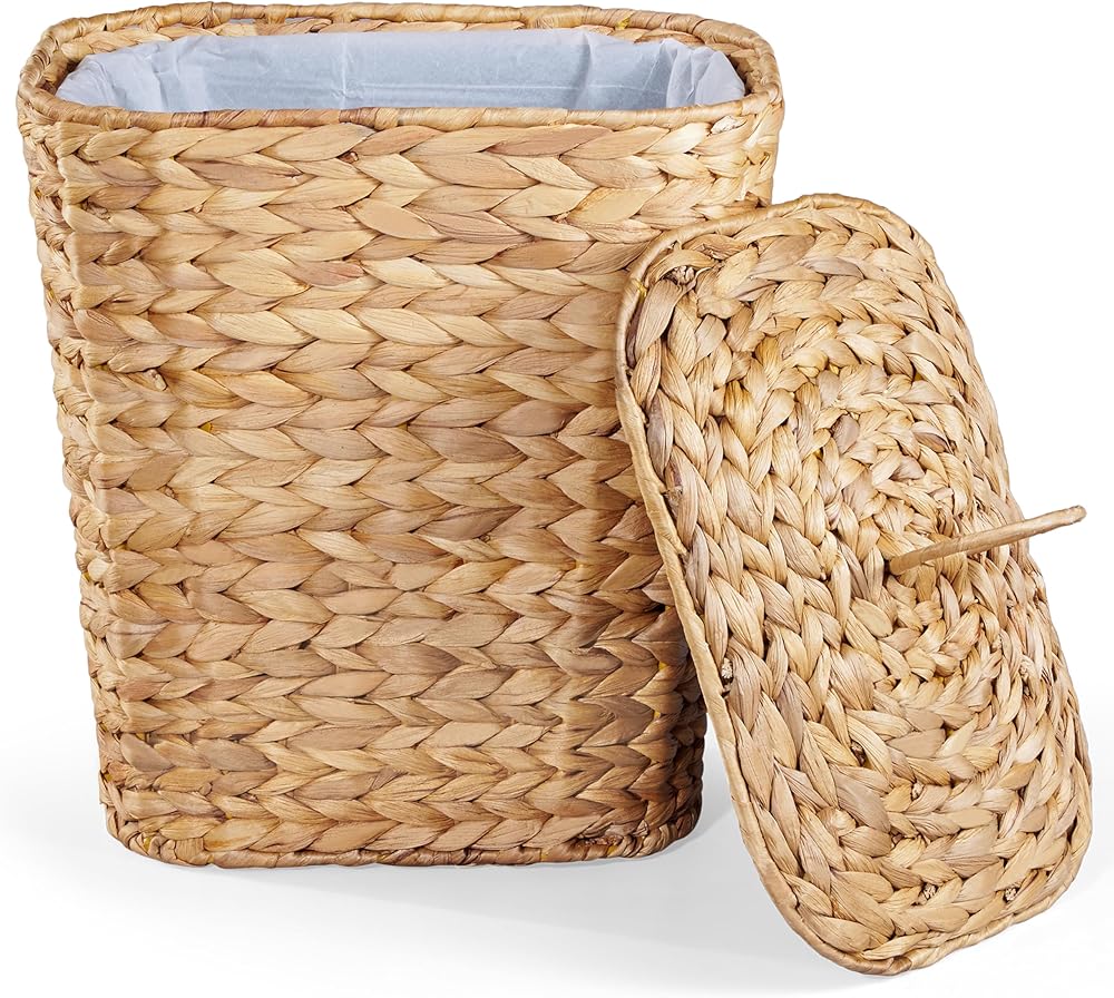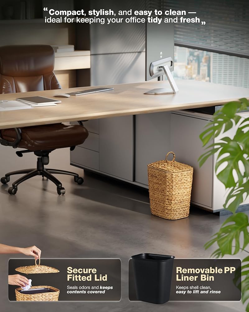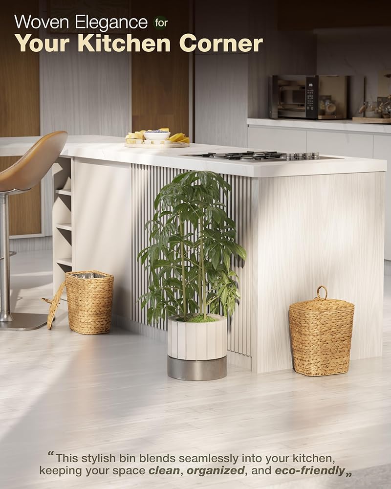 🛠️ Convenient Lid with Secure Ring Handle: The handwoven lid is designed with a strong ring handle for effortless lifting and closing. The snug fit prevents odors from escaping, keeping your space fresh and tidy.