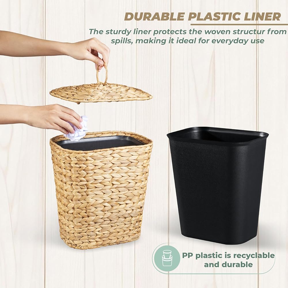 BLUEWEST 2.6 Gallon Wicker Trash Can with Lid, Handwoven Rattan Trash Can, Woven Decorative Wastebasket, Wicker Waste Basket with Removable Plastic Inner Bin for Bathroom, Bedroom, Office, or Kitchen