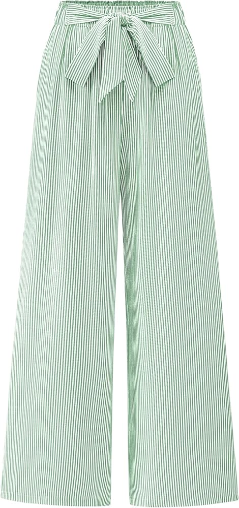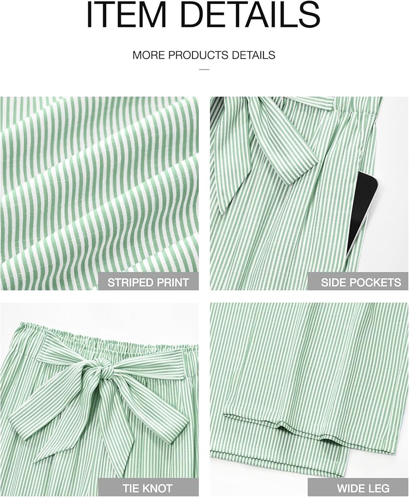 FEATURES: Wide Leg Striped Pants / Tie Knot Trousers / Elastic Waist Pants / Side Pockets / Loose Trousers Pants / Long Pants For Women / Palazzo Lounge Pant / Maxi Length