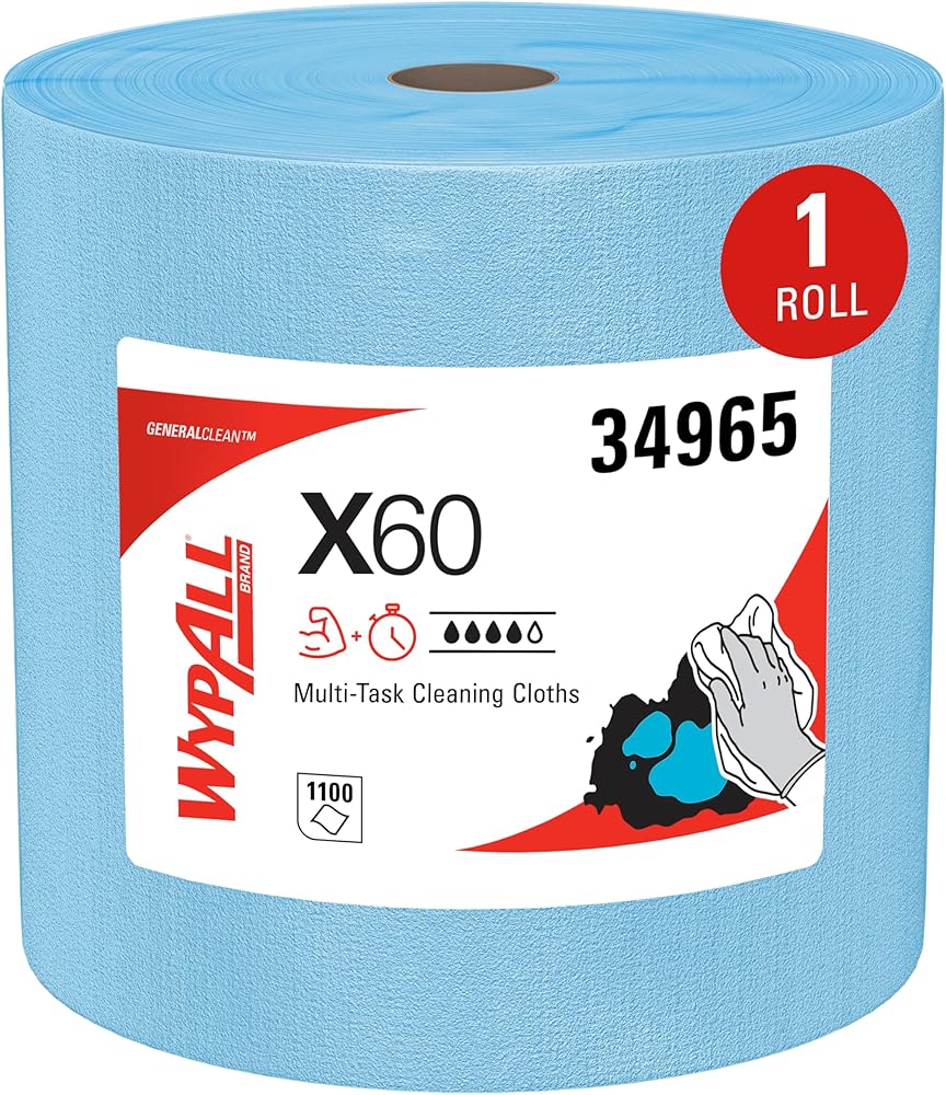 Pound for pound, WypAll® X60 Cloths absorb more than two times as much water as rags. They bring the absorbing power of HydroKnit technology (for superior absorbency) to a lighter-weight cloth. Designed to outperform laundered rags, WypAll® X60 Cloths help raise the standard for general-purpose cloths at a terrific value. They don't use adhesives or binders, so they'll leave no residue behind, and they're reinforced for strength when wet or dry. They can be used for applying thinners and solvents, in cable lubricant removal, adhesive cleaning and removing grease and soil in tight areas. These cleaning towels come on a Jumbo Roll (for high-capacity longevity) and come perforated to a large 12.5” by 13.4” size. They're so sturdy that they can often be used more than once (once you've used them a few times, they're disposable). They're designed to reduce waste so you spend less. When effectiveness and value top your list of criteria, you can trust WypAll® X60 Reusable Wipes to deliver.