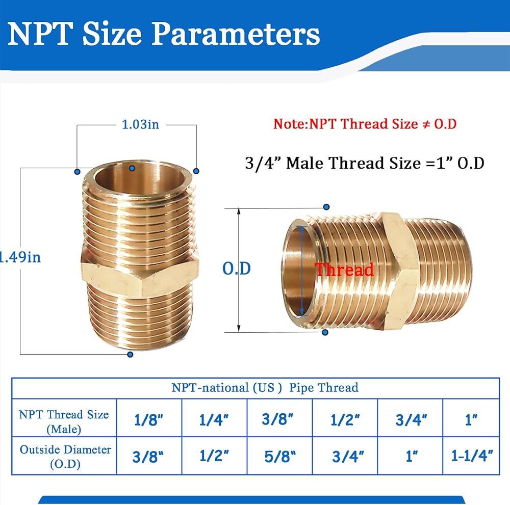 【Anti-corrosion】 : Complying specifications, our 3/8 " npt x 3/8 " npt adapters meets industry standards for quality and reliability. The reducer hex bushing is made from premium forged brass, ensuring durability and longevity .These 3/8 inch male fittings are hard connect way and in most cases do not require sealant.